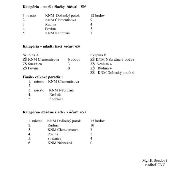 Výsledky okresnej súťaže vo florbale mladších a starších žiakov a žiačok ZŠ
